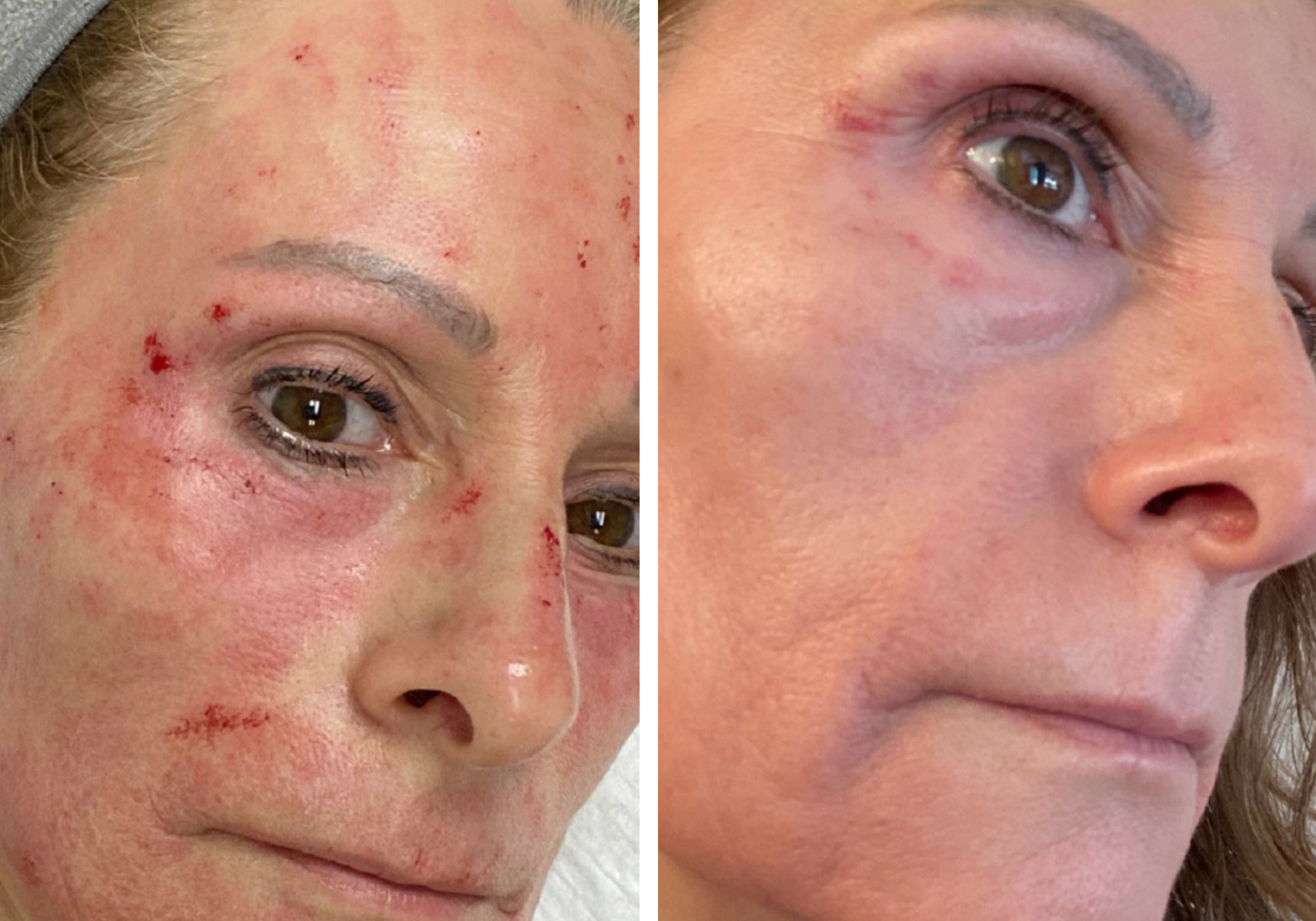 Vorher: Die Kundin machte ein kosmetisches Microneedling. Erfahrungsgemäß muss man nach einer solchen Behandlung mit einer 2-3-tägigen Ausfallzeit rechnen.
