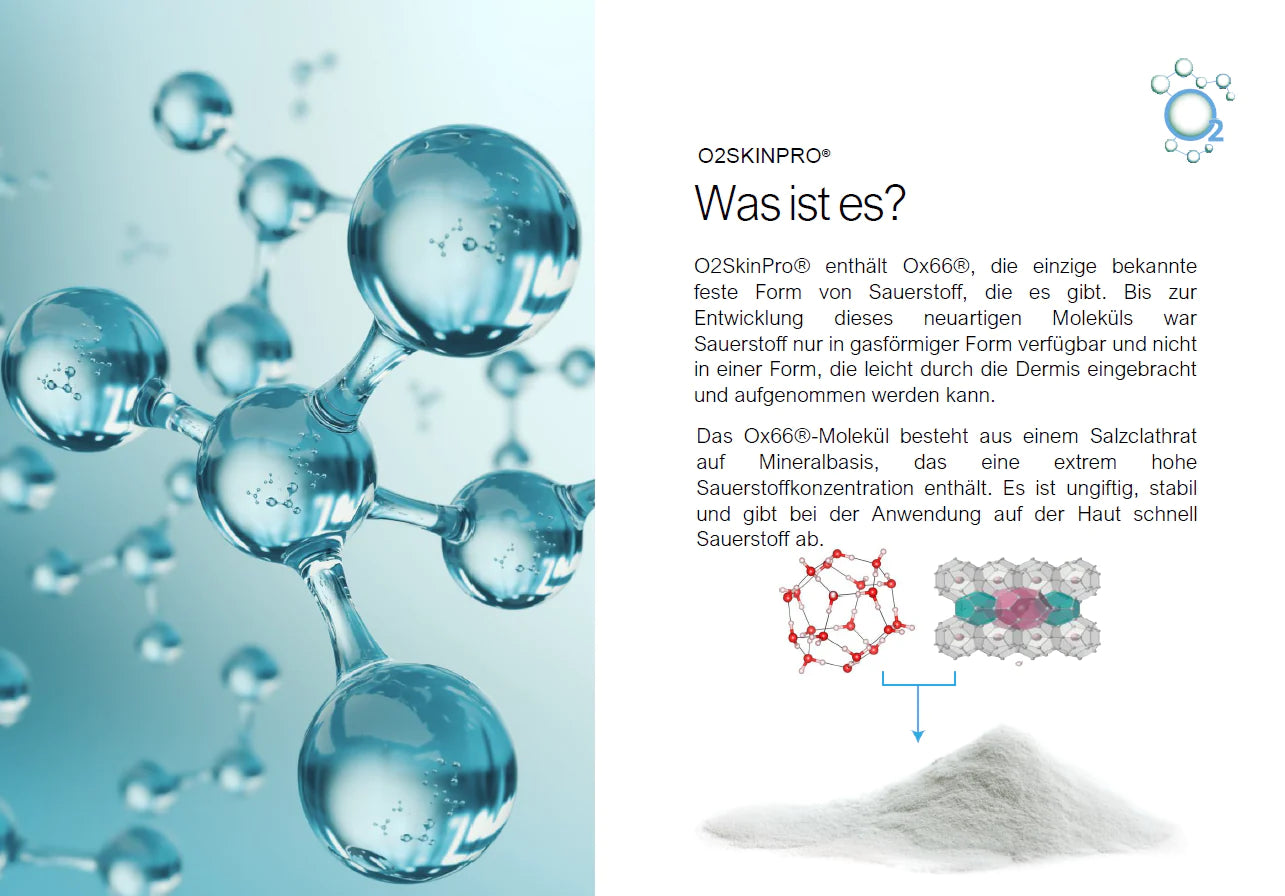 "Sauerstoff hat nachweislich Vorteile für die Haut. Wenn man sich verbrennt und ins Krankenhaus kommt, wird man in eine hyperbarische Sauerstoffkammer gelegt. Wenn man eine Hirnverletzung hat oder wenn der Körper in irgendeiner Form in Not ist, wird Sauerstoff verabreicht. Der Grund dafür ist, dass Sauerstoff die natürliche Heilungsfunktion des Körpers anregt. Er wirkt entzündungshemmend, antibakteriell und regt die Kollagenproduktion an."